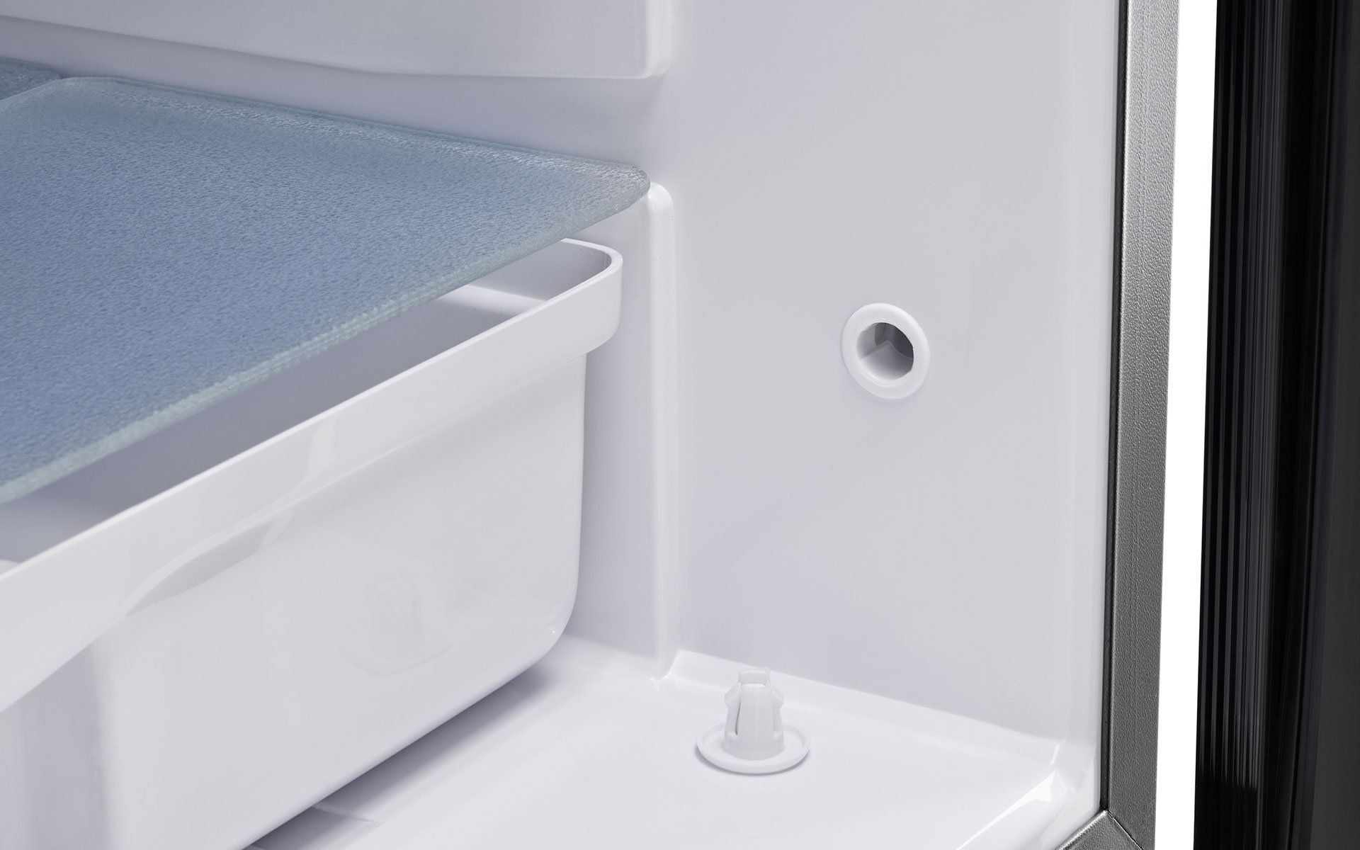 Among the smallest built-in compressor refrigerators for fixed installation in motorhomes and caravans. It has a freezer compartment, it differs in depth and hinged opening. It can hold bottles both vertically and horizontally. With easyfix fixing.