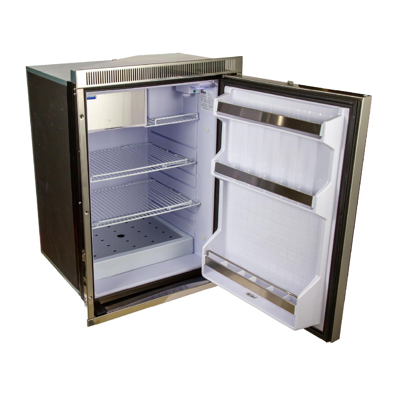 130-cm-Kühlschrank in spezieller Edelstahlausführung mit integriertem Belüftungs- und Entwässerungssystem für perfekte Installation und optimale Leistung.