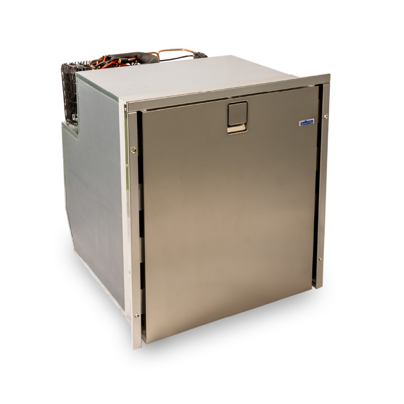 Drawer freezer with a capacity of 55 litres, equipped with a stainless steel door that opens from the front. This model combines the innovative stainless steel design with the most advanced technology, such as the automatic defrost system, which guarantees maximum comfort, even on board. The freezer is equipped with an internal fan that ensures constant temperature control, while a series of 5 blue LED lights illuminate the interior, creating an elegant and functional atmosphere. Also available with the CUSTOM PANEL option for total customization. A perfect balance between aesthetics, innovation and practicality.
