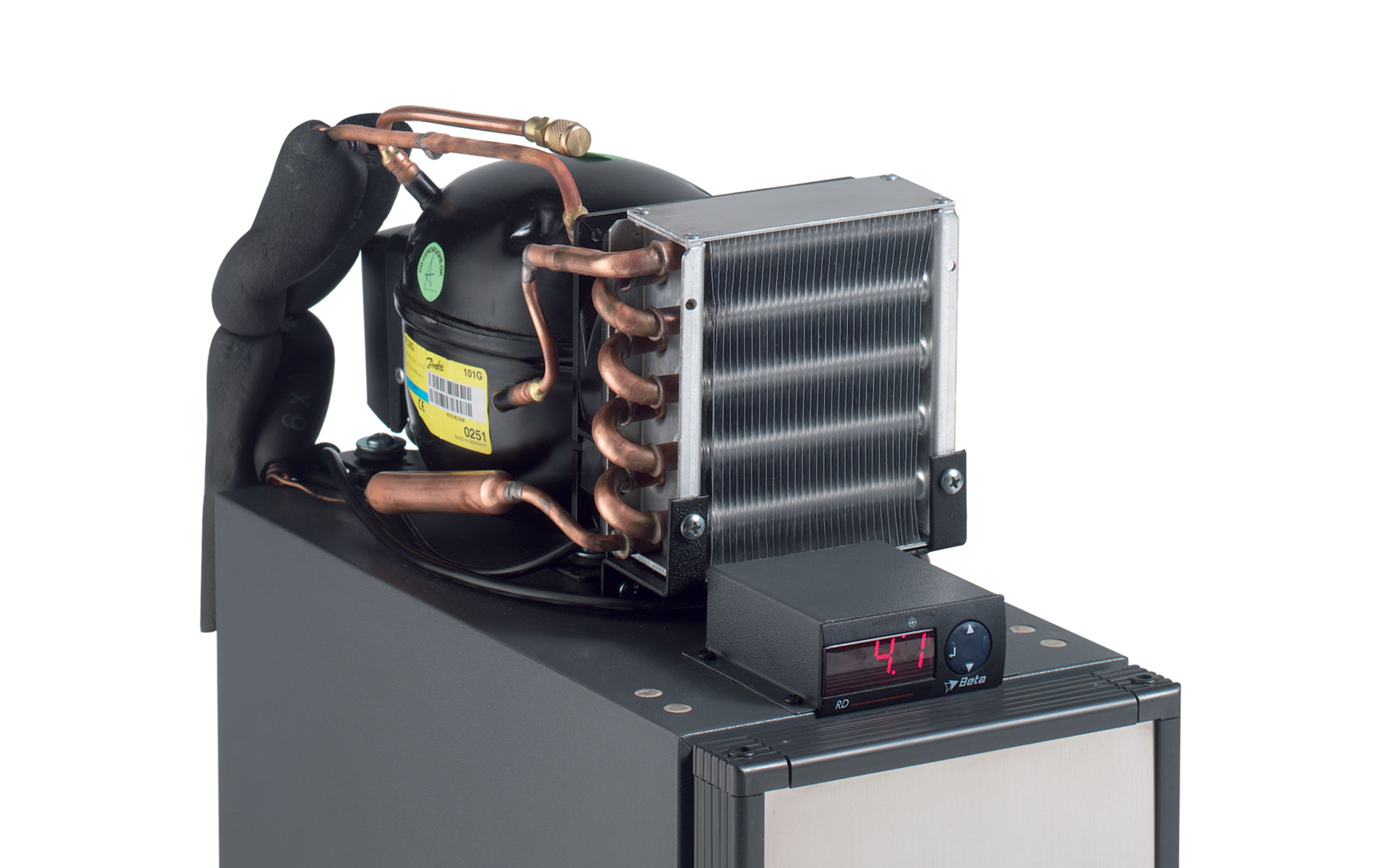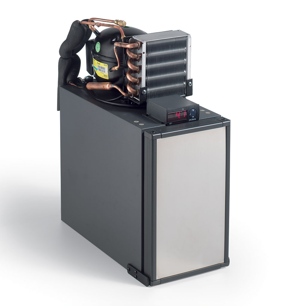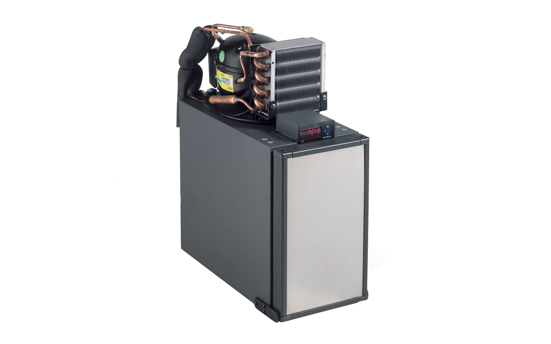 FL11 Top es el FrigoLatte de compresor con 11 litros de capacidad en versión empotrable. El FrigoLatte FL11 Top cuenta con un termostato electrónico para una visualización inmediata de la temperatura. La unidad de refrigeración se coloca encima del mueble y la apertura de la puerta es basculante.