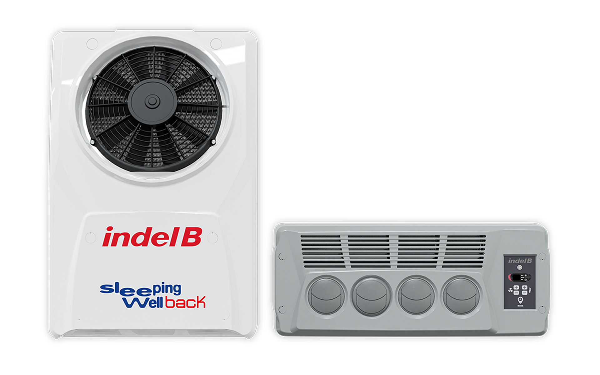 Sleeping Well Back se instala en la pared y garantiza la máxima frescura en la zona de noche de la cabina. La unidad de evaporación, de hecho, se puede instalar en la pared trasera del vehículo y la longitud de los tubos de conexión se puede ajustar.