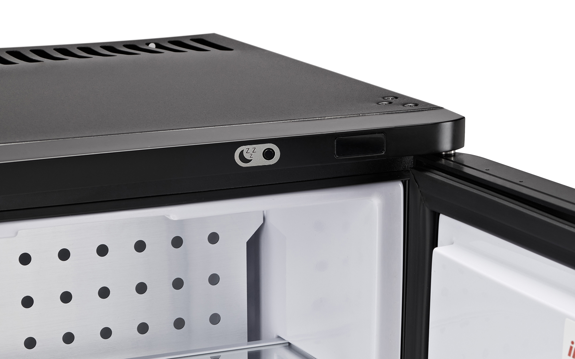 K20 ECOSMART, with a capacity of 20 litres, has the possibility of reversing the door opening if desired. On request, a custom panel and a key lock can be fitted. The Ecosmart system allows you to reduce energy consumption and maximize the comfort of the guest in the room. The SNOOZE function also allows you to switch off the compressor (for 8 hours) by simply pressing the dedicated button located on the front of the minibar.